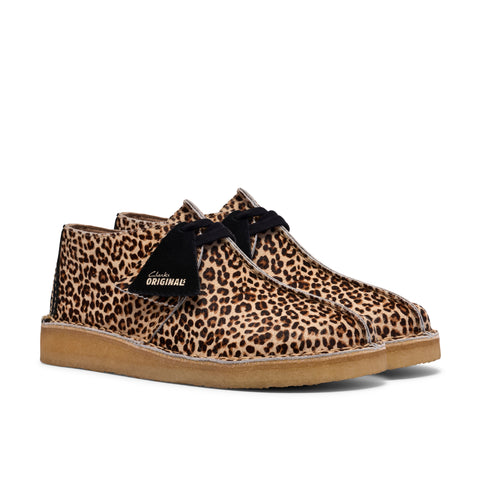 The Desert Trek features premium hair-on uppers adorned in a classic leopard print pattern, blending heritage craftsmanship with striking design.