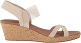Sunny-weather style arrives with feet-loving comfort in Skechers Cali Rumble On - Casual Moments. This wedge sandal features a stretch fabric and sheer mesh multi-strap upper with a cushioned Luxe Foam footbed.