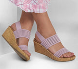 Sunny-weather style arrives with feet-loving comfort in Skechers Cali Rumble On - Casual Moments. This wedge sandal features a stretch fabric and sheer mesh multi-strap upper with a cushioned Luxe Foam footbed.